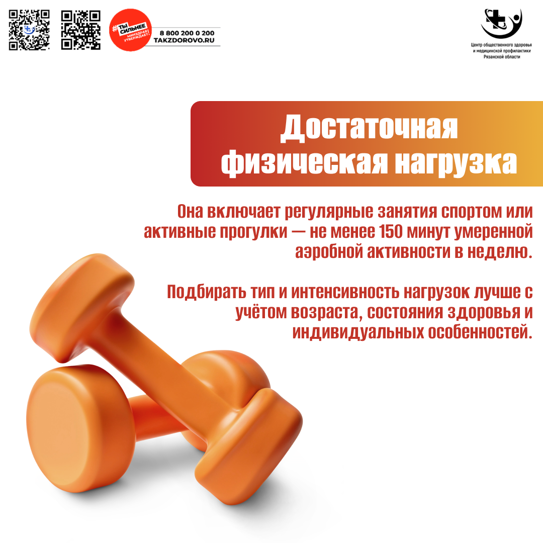 Исследования показывают, что физическая активность снижает риски смертности от всех причин, в частности, 2,5 часа умеренной активности в неделю (эквивалентно 30 мин умеренной активности в день в течение 5 дней в неделю) по сравнению с нулевой активностью связано со снижением риска смертности от всех причин на 19%, в то время как 7 часов умеренной активности в неделю – на 24%.